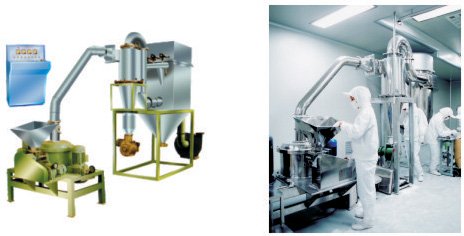 本机适应范围广,生产过程连续进行,出料粒度可调;能处理如:化学制品、食品、药品、化妆品、染料、树脂、壳物等多种物料的粉碎及分级。