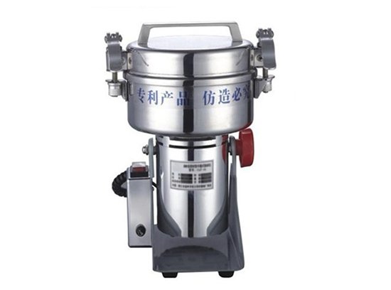 由不锈钢上盖下体粉碎室构成,螺扣式封闭。通过直立式电机的高速运转带动横向安装的粉碎刀片,对物料进行撞击、剪切式粉碎。粉碎物体由于在密闭的空间内被搅动,所以粉碎效果相对均匀,适合干性物料。该机具有摇摆设计,方便对物料的倾倒和清理。