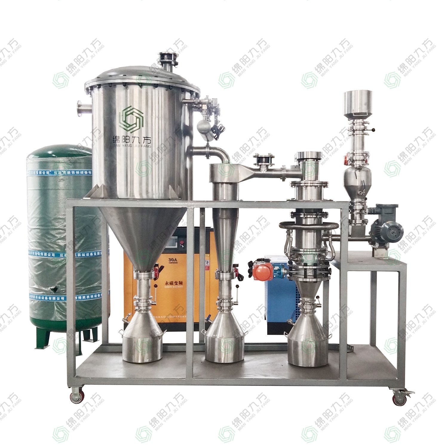 鉴于钛合金粉末存在易燃易爆的物理特性, JFDBL型气流粉碎机将普通气源替换为惰性气体,采用闭路循环系统使原料在整个打散过程中与空气隔离,达到防爆效果,惰性气体循环使用。