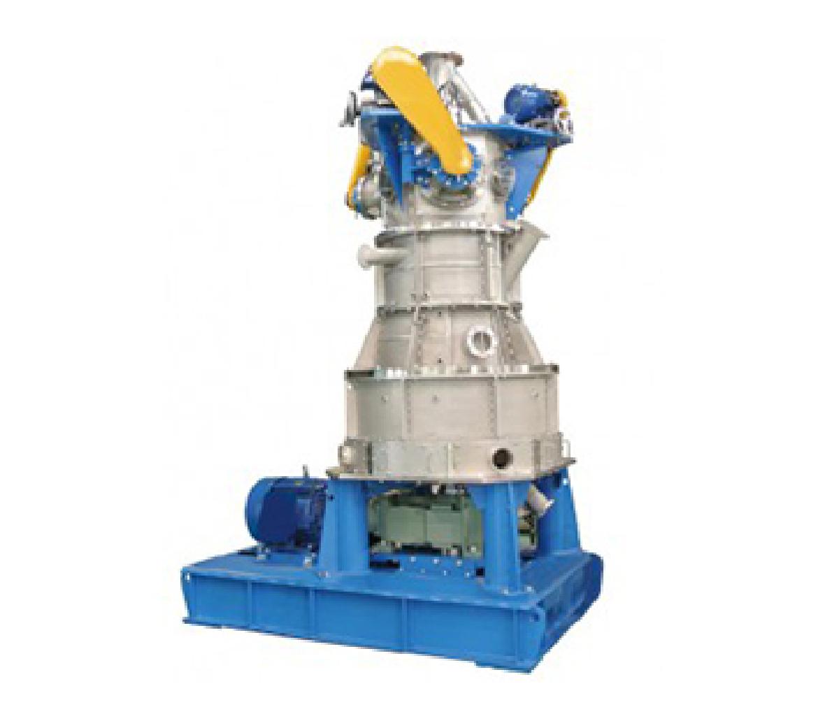Pulvis是高效节能的超细干法研磨机和集成分级机。用冲击式粉碎机或气流磨来获得亚微米级颗粒,需要非常大的研磨能量。另一方面,球磨机等介质搅拌研磨机在具有节能特性的情况下,有可能被磨成亚微米范围,但问题是粒径分布较为广泛。为了解决这个问题,在搅拌介质研磨机中集成分级机来连续生产亚微米大小的颗粒。