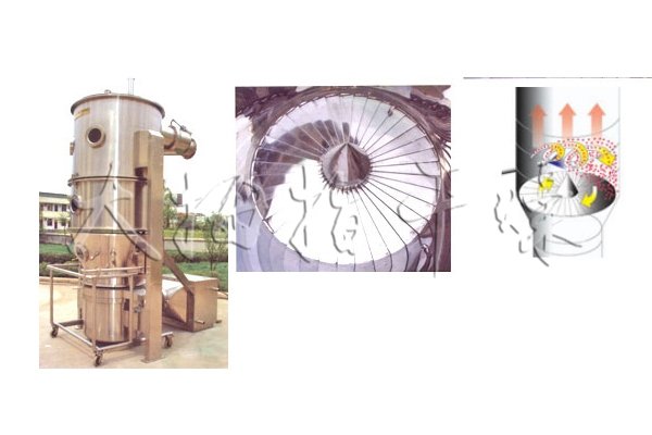 旋流流化床制粒包衣机是将流化床做成叶片式结构的流化床,并使叶片呈一定斜度,让气流从叶片的间隙通过,形成环流状的强大气流,使物料呈旋涡状似的有序运动,同时安装在侧壁的气动喷嘴将粘合剂或包衣液喷入呈旋涡状的物料层,从而将粉体制成颗粒或获得连续均匀的衣膜。