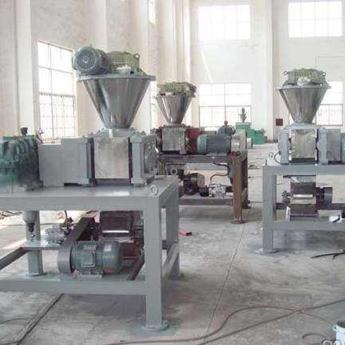 挤压造粒的形式可以有对辊式和轮辗式两种,对辊式挤压是先压成大块,再破碎成颗粒,这样装置的能力大、颗粒强度高、能耗低,对辊挤压在国外使用广泛。轮辗式是在辊表面直接做成有穴槽型的形状,一次挤成成型颗粒。产品强度较低有时需添加粘结剂。适合做有机肥和复合肥等颗粒肥料。