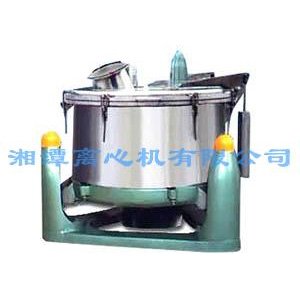 防爆电机装于底盘中心,取代轴承室,转鼓直接装在电机主轴上。电机带动转鼓旋转,物料由进料管引入转鼓,进料达到预定容积后停止进料,进一步分离。进料和分离过程中,液相物穿过滤布和转鼓壁滤孔排出转鼓,经排液管排出机外,固相物截留在转鼓内,分离完毕停机后,人工从上部卸料。