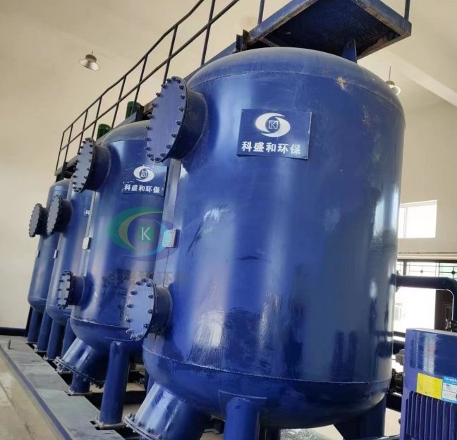 流沙过滤器可以有效去除原水(或废水)中悬浮颗粒及胶体物等杂质,设备的工作原理如下:原水过滤和滤料清洗再生两个相对独立又同时进的行的过程,两者在同一个过滤器的不同位置完成,原水过滤的动力依靠高位差或泵的提升,而滤料清洗再生过程则通过压缩空气完成,整个过滤过程中,滤料向下循环流动,而原水则向上流动,使原水和石英砂充分接触,截留悬浮物质。