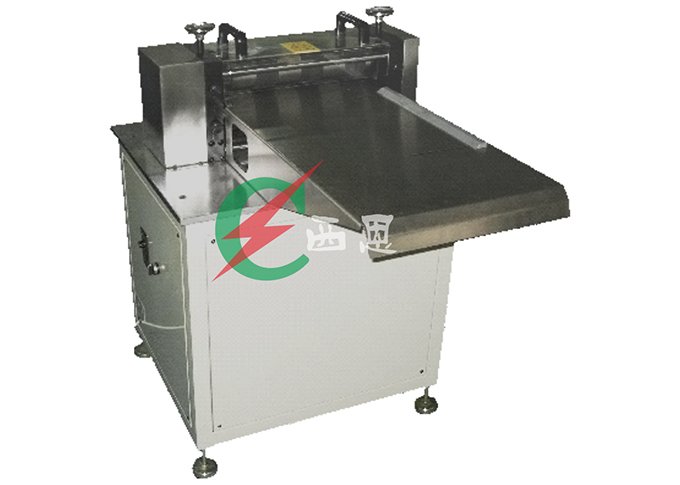 该设备主要是适于锂离子电池正负极片纵向手动分条,将裁片后的极片手动分条成要求宽度。设备一人操作。生产效率10m/min,产品宽度精度为0-0.20mm