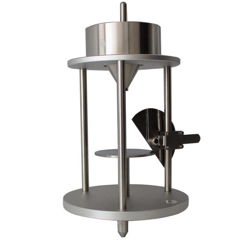 本装置适用的测定对象是粉尘,采用注入限定底面法测定粉尘安息角,与ISO 4324:1997的主要技术差异是不测量堆积在限定底面上的粉尘高度而采用量角器直接测定粉尘安息角。