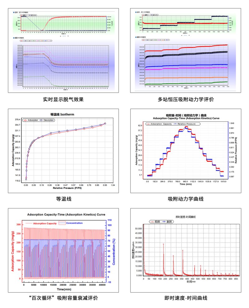 测试功能 | 吸附脱附等温线、吸附动力学等吸附性能测试 | |