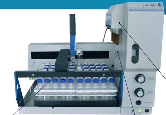 4100引进的新技术提高了样品分析的可靠性和分析性能。气动样品瓶抓手可有效的根据标签抓取样品瓶并且防止遗落。高速注射阀提高了添加标准品的精度,有效的减少了标准品的使用量,从而降低了实验室运营成本。