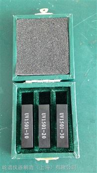 按照国家计量检定规程《JJG178-2007紫外-可见-近红外分光光度计》国家计量检定规程的技术要求研制的紫外-可见光区透射比标准滤光片,完全满足技术指标要求。产品使用进口材料,保证了滤光片的均匀性,定值数据可溯源到国家基准,外形按被检定仪器样品槽尺寸,是标准通用的。共有3块滤光片,透射比分别为10%、20%、30%,每块滤光片都有规程规定的3个波长下的透射比标准值。有证书。有包装盒。 1、长期稳定性好; 2、中性程度高; 3、携带方便,不怕磕碰。 使用说明: 1、波长分别调到440nm/546nm/635nm; 2、校准空气空白; 3、分别把10%/20%/30%滤光片(放入)拉入光路中,读取并记录仪器显示的透射比值; 4、拿标准值减去实测值即为该台仪器透射比准确度。