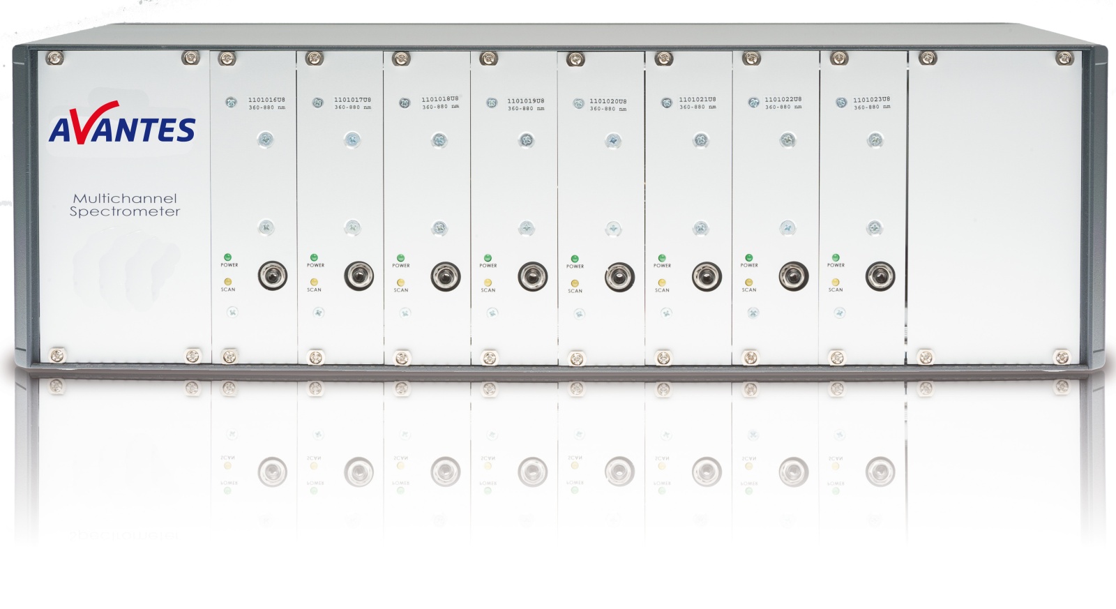 AVS-RACKMOUNT-USB2 | 19“机架式USB2平台多通道AvaSpec系列光谱仪,包括通道同步,支持USB2和100-240VAC电源。 10个机架式光谱仪装置。 |