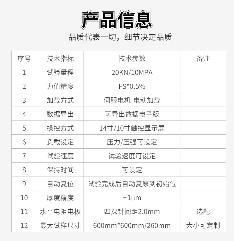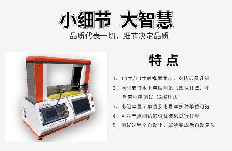 仪器可以测试平面电阻(四探针)、垂直方向电阻及体积电阻率测试。