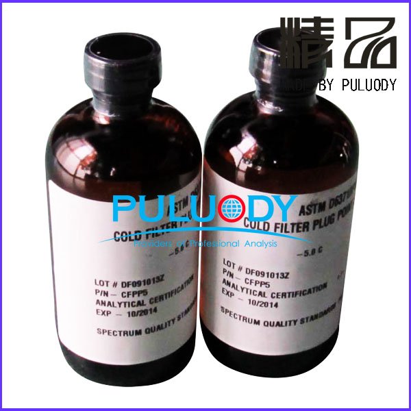 柴油冷滤点标准油、SH/T0248-2006冷滤点标准品又名冷滤点标准油、冷滤点校准标准品、冷滤点标准物质、冷滤点有证标准物是普洛帝测控为满足SH/T0248-2006《柴油和民用取暖油冷滤点测定法》标准规定,对手动仪器和自动仪器进行校准用的标准油品。