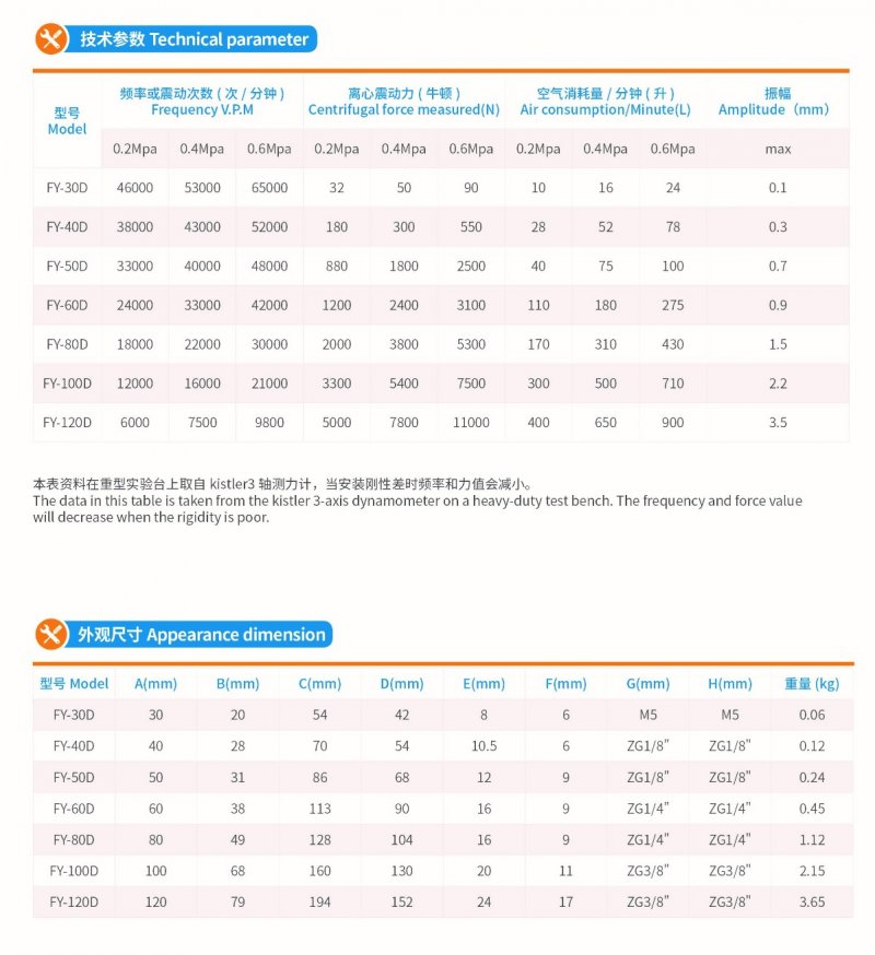 本表资料在重型实验台上取自 kistler3轴测力计,当安装刚性差时频率和力值会减小。