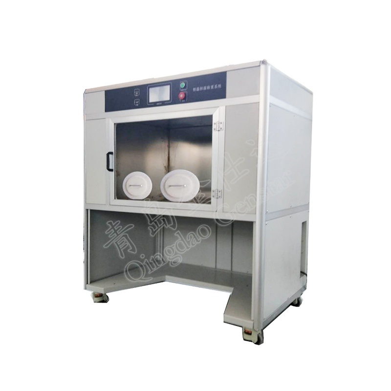 ◆ 箱体上有两个手操入口,并用长乳胶手套隔离,操作过程中可保证恒温恒湿箱体内温湿度不受影响