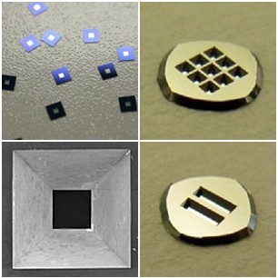 3 mm x 3 mm (窗口尺寸:0.5 mm,薄膜厚度:50 nm) 3 mm x 3 mm (窗口尺寸:1.0 mm,薄膜厚度:50 nm) 3 mm x 3 mm (窗口尺寸:1.0 mm,薄膜厚度:100 nm) 边框厚度: 200μm、381μm。