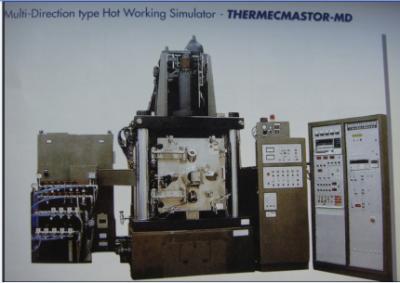 本装置的加热是通过高频和通电2种方式实现。变形加工是通过电气油压伺服控制系统实现。相变点确定是通过非接触式测定方式实现。系统的真空排气,气氛调整都是通过计算机和程序控制器(FCS(Fuji Dempa Control)实现完全自动化。通过它可以考察金属材料放在不同的气氛下热加工过程中各种加工条件-温度-畸变的相互关系,可以准确地把握热加工过程中以及热加工后产生的各种现象-变形抗力-组织变化等相互关系,可以同时精确确定紧接着热加工后的相变行为。检测出的情报通过data logger根据不同设定对应的不同取样时间收录后保存到硬盘里。随后进行数据处理即可获得「S-S」曲线和「CCT」曲线。*后结果用打印机打出。