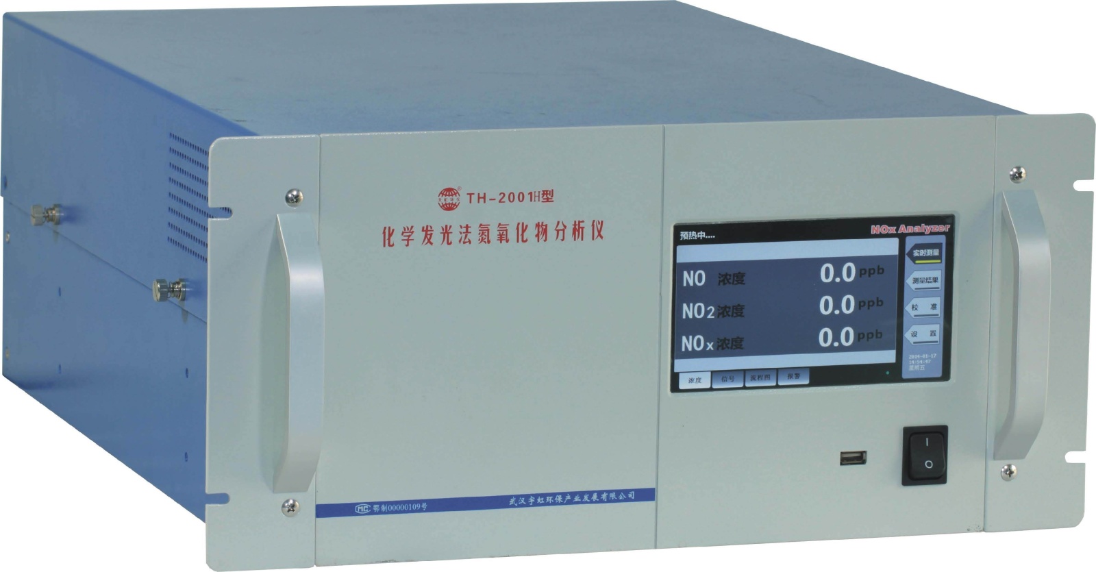 本仪器采用化学发光法。基本工作原理为:NO和O3发生反应生成带有能量的NO2,带有能量的NO2释放能量时产生特定波长的荧光,这种荧光的强度与NO的浓度成线性关系,光电管将光信号转变成电信号,测出NO的浓度。样气检测方法为:样气中的NOX进入仪器分成二路,一路样气进入反应室,样气中NO与O3发生反应,测出NO的浓度,另一路样气进入转换炉将样气中的NO2转换成NO,再进入反应室与O3发生反应,测出的就是NO2+NO=NOX,用NOX浓度减去NO浓度就是 NO2的浓度。