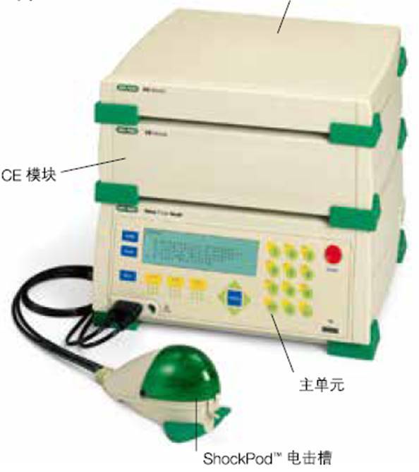 完全系统包 括主单元、PC 模块、CE 模块和 ShockPod 电击槽,可使用指数波或方波脉