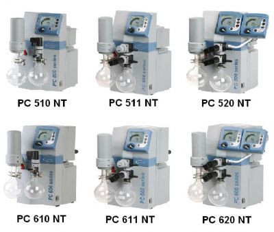 | PC 511 NT | MZ 2C NT | 两个进气口,一个口配手动流量阀,一个口配电磁阀及CVC 3000真空控制器;进气口气体分离瓶(AK);出气口溶剂回收系统(EK) | 2.0 / 2.3 | 7 | 12 | 435 x 243 x 444 | 16.9 |