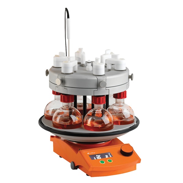 六位平行合成仪**设计的六位平行合成仪可在惰性气体环境下同时加热/冷却、搅拌和冷凝回流多个样品。