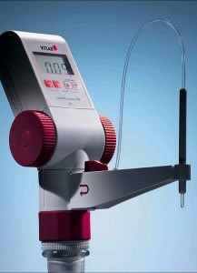 VITLABWalu ; E或RS电子滴定器不象普通玻璃测定器那样操作繁琐,也不象专业滴定系统那么昂贵.它体积小,电池寿命长,适用在狭小和远离电源的地方使用.数字显示消除了人为计数所带来的误差和计算体积时产生的误差.Continuous E是您在实验室和室外工作时的理想选择.