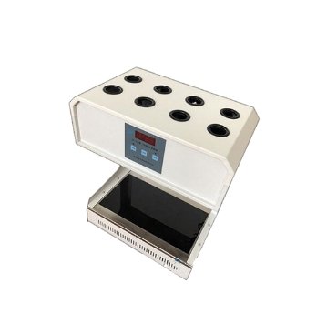 HCA-102恒温消解器采用嵌入式黑晶加热玻璃作为其加热系统总成部分,做到耐酸碱,耐腐蚀。黑晶加热玻璃升温快热能利用率高,表面各区域加热平衡,加热停止后降温速度快等优点。HCA-102标准COD消解器采用玻璃毛刺回流管代替球形回流管,并以风冷技术取代自来水回流冷却方式,并在冷凝管末段以静止水辅助冷却,既可以节水又能使仪器规范化,同时还提高了仪器使用的安全性。HCA-102标准COD消解器采用微机技术进行定时控制加热电炉,可对8个250ML锥形消解回流装置同时进行加热。达到节能、减低电力负荷、提高效率的目的。