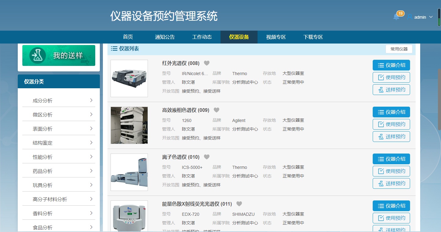 1. 仪器管理支持增删/编辑学校实验室仪器平台的仪器设备、管理人员信息;