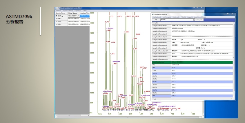 色谱模拟蒸馏方法数据准确、分析快速、用样量少、自动化程度,已成功应用于轻石脑油、汽油、煤油、柴油、润滑油、渣油、原油的馏程测定。