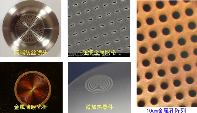 采用UV-LIGA技术进行各种常规、异性金属材质的微纳孔加工。典型critical dimension为1um-100um;材料选择广泛如Ni、Cu、Zn、Fe-Ni、Ni-W等。