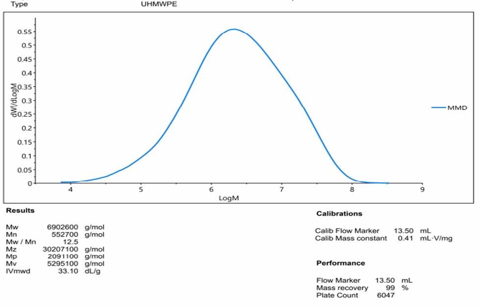图2.超高分子量聚烯烃材料分子量及其分布