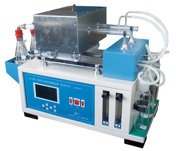 JK-30A深色石油硫含量测定器(管式炉法)是根据国家标准石油和石油产品试验方法GB/T 387标准要求制造的,适用于测定润滑油、原油、焦炭和残渣油灯石油产品的硫含量。