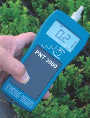 这些因素决定了具有“活性”并且可供植物使用的盐量。植物营养物质,如硝酸盐、钾等都是盐离子,通过对活性盐离子的测量可及时获得植物营养状况信息。测量“活度”的基本原理是由德国Geisenheim土壤科学与营养研究院前院长Dr.Tepe提出的。因该方法简单、快速和可靠,现已在植物营养控制领域广泛应用。PNT3000活度计采用SMD技术,目前所有“3000系列”活度计生产都采用该技术。该技术比常规技术更加可靠、耐温性能更好。其坚固的外壳能够防水,适合野外作业。该仪器操作便捷,一键启动即可完成PNT3000所有操作。仪器出厂前均由专业技师进行检测和校准,使用前无需再次校准。