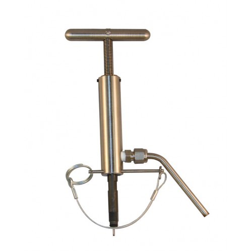 HTHP泄压工具*(#170-91)提供了一种安全的方法来释放阻塞样品罐中的压力。它使用现有的阀杆端口螺丝固定在HPHT样品罐盖上,然后,使用一个T形手柄,操作者可将针插入罐内,穿透阻塞。压力将通过排气管安全排出,保证远离人员和设备。
