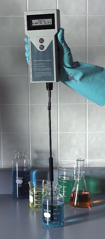经济型比重表;比重范围:1.000至1.300 比重单位;探头尺寸:4英寸宽 x 8 1/4英寸高 x 1 1/2英寸厚;摄氏温度机型