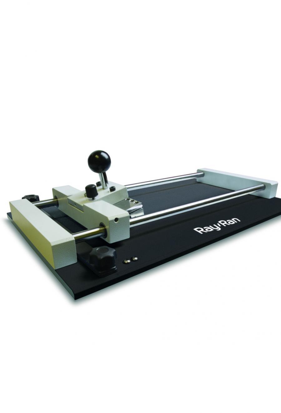 该设备配备有一个凹进的底座,该底座可以容纳切割基垫,例如卡片或橡胶板,这将有助于在切割过程中保护切割刀片。还安装了夹紧机构以牢固地支撑样品材料。标准的设备切割行程长度可容纳A4尺寸的样品,但可以增加以满足客户的个人要求。