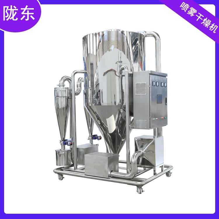 3、喷雾干燥机生产过程简化,操作控制方便。对于湿含量40-60%(特殊物料可达90%)的液体能一次干燥成粉粒产品,干燥后不需粉碎和筛选,减少生产工序,提高产品纯度。对产品粒径、松密度、水份,在一定范围内可通过改变操作条件进行调整,控制和管理都很方便。