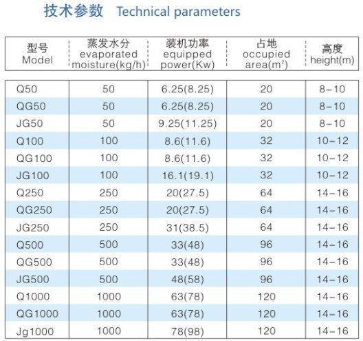 ■ 湿物料经输送机与加热后的自然空气同时进入干燥器,二者充分混合,由于热质交换面积大,从而在很短的时间内达到蒸发干燥的目的。干燥后的成品从旋风分离器排出,一小部分飞粉由旋风除尘器或布袋除尘器得到回收利用。Q型气流干燥器是负压操作,物料不经过风机;QG型气流干燥器是正压操作,物料经过风机带有粉碎作用;FG 型气流干燥器是尾气循环型;JG型气流干燥是强化型气流干燥器,其集闪蒸干燥与气流干燥为一体,是我厂根据用户要求设计的新型干燥设备。