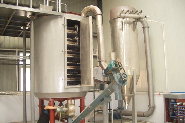 我公司的盘式干燥机具连续运行,热效率高。盘式连续干燥机以传导传热方式进行干燥,干燥过程中干燥器内只通入极少量(或不通入)空气,其尾气携带量很少,故其热效率可达65%以上。动力消耗低、噪音小。由于干燥过程中料层很薄,主轴转速低,物料传送系统所需的功率小,电耗很少,其全套干燥装置动力消耗仅是对流方式传热装置动力消耗的1/5~1/7,且噪音很小。