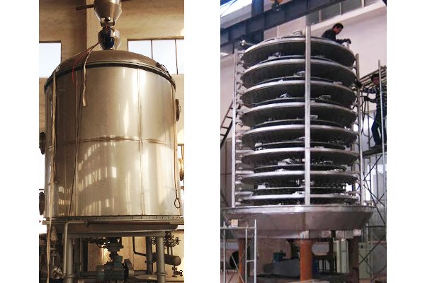 我公司的盘式干燥机具连续运行,热效率高。盘式连续干燥机以传导传热方式进行干燥,干燥过程中干燥器内只通入极少量(或不通入)空气,其尾气携带量很少,故其热效率可达65%以上。动力消耗低、噪音小。由于干燥过程中料层很薄,主轴转速低,物料传送系统所需的功率小,电耗很少,其全套干燥装置动力消耗仅是对流方式传热装置动力消耗的1/5~1/7,且噪音很小。