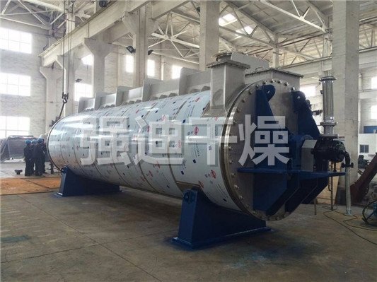 空心轴上密集排列着中空圆盘,热介质经空心轴流经圆盘。单位有效容积内传热面积很大,热介质温度从-40℃到320℃,可以是水蒸汽,也可以是液体型:如热水、导热油等。间接传导加热,没有携带空气带走热量,热量均用来加热物料。热量损失仅为通过器体保温层向环境的散热。壳体有密封端盖与上盖,防止物料粉尘外泄而充分发挥作用。