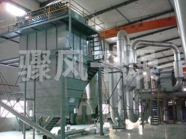 底部强化器设计独特,搅拌齿为菱形,其流线性能使风阻达到 小,设置在圆锥形料斗内,分动刀和定刀,粉碎效果显著,使下落的结块物料迅速粉碎为适合气流干燥的粉粒料,搅拌的另一个主要作用是分散物料,加大了与料斗下面进来的高速热风的接触面积,于是料斗区形成了一个强烈传热传质的流化床,大部分湿分在料斗区被干燥。随着干燥的进行,变轻变细的干料受气流作用明显,与气流一起上升并进一步干燥, 后从干燥塔顶部出来进入物料收集系统。