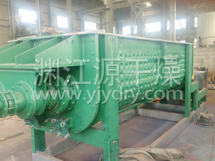 浆叶干燥机已成功地用于食品、化工、石化、染料、工业污泥等领域。设备传热、冷却、搅拌的特性使之可以完成以下单元操作:燃烧(低温)、冷却、干燥(溶剂回收)加热(融化)、反应和灭菌。搅拌浆叶同时又是传热面,使单位有效容积内传热面积增大,缩短了处理时间。楔型浆叶传热面又具有自清洁功能。压缩--膨胀搅拌功能使物料混和均匀。物料沿轴向成"活塞流"运动,在轴向区间内,物料的温度、湿度、混合度梯度很小。用导热油做热介质浆叶干燥机可完成低温燃烧工作。如:二水硫酸钙(Ca2SO4·2H2O) 燃烧转化为半水硫酸钙(Ca2SO4·1/22H2O)。碳酸氢钠(NaHCO3)经煅烧转化为纯碱(Na2HCO3)等。通入冷却介质,如水、冷却盐水等即可用来冷却。如:使用于纯碱行业的浆叶式凉碱机,取代老式的空气冷却凉碱机,节省了能源及尾气处理设备,降低了操作费用。干燥,设备*主要的功能,不使用热空气,使溶剂回收、能源消耗、环境控制处于易处理的理想状态。对需回收溶剂、易燃易氧化热敏性物料尤为适应。已广泛用于精细化工、石化、染料行业。轴向区间内,温度、湿度、混合度的均匀性,使得设备可用来加热或融化,或进行一些固体物料反应。在复合肥及变性淀粉行业均已成功使用。浆叶干燥机可用来对食物和面粉进行灭菌处理。单位有效容积内大的加热面积,很快就将物料加热到灭菌温度,避免了长时间加热而改变物料品质。