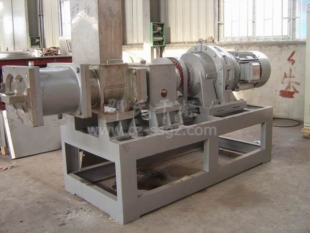 出来的物料进料高速挤压造粒机内,挤压出长条形规则的粒子,出料的粒子经过振动给料机进料一