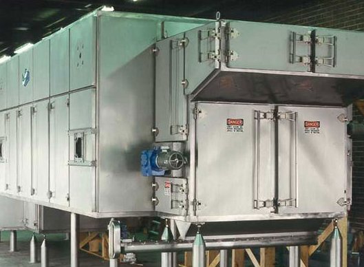 他们包括向上或者向下的中高速直接穿透物料的气流配置和独立的区间温度控制部分。由于穿透流化床的气流需要返回到一组风机上,这些风机沿着烘干机长度方向布置,区间部分很容易进行分隔。每台输送机都独立穿过烘干机,容许根据产品干燥特性的温度剖面处理,以达到**的烘干效率。