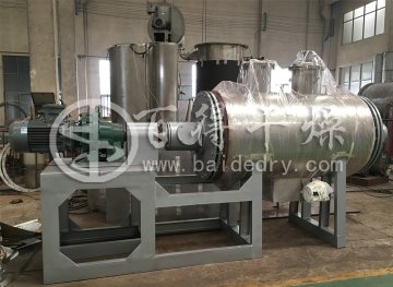 被干燥物料从壳体上方正中间加入。在不断转动的耙齿的搅拌下,物料与壳体壁接触时,表面不断更新,被干燥物料受到蒸汽间接加