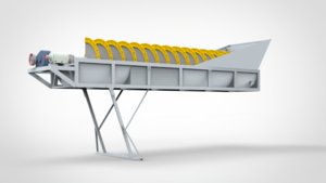 螺旋洗砂机是利用水的浮力作用,将粉尘和杂质与砂分离,经过螺旋叶片的搅动,达到滤水去杂质,提高砂的质量。并且在搅动过程中,也进行了拌和工作,使洗出的砂搅拌均匀,无细、粗砂之分。工作时,电机通过三角带、减速机、齿轮减速后带动螺旋叶片缓慢转动,砂石由给料槽进入洗槽中,在叶轮的带动下翻滚,并互相研磨,除去覆盖砂石表面的杂质,同事破坏包覆砂粒的水汽层,以利于脱水;同时加水,形成强大水流,及时将杂质及比重小的异物带走,并从溢出口洗槽排出,完成清洗作用。干净的砂石由螺旋叶片带走,*后砂石从旋转的螺旋片倒入出料槽,完成砂石的清洗作用。