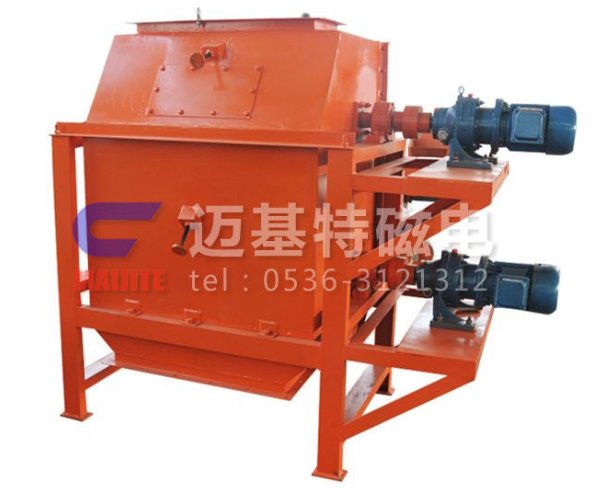 CXGB系列干式磁选机是一种用于细粉、颗料状、小块状物料连续除铁的磁选设备,它是将圆弧形的**磁铁固定在轴上,而非磁性转筒沿着磁场圆周旋转,被吸附的铁杂质被带到磁筒的下方后,铁磁性物质脱离磁场区后,因此失去了磁场的吸引而落入弃铁箱,完成整个选铁过程。其内部构造采用日本**先进技术,磁系采用超强钕铁硼材料组成,具有磁场强、吸力大、除铁率高、节能易维护、使用方便等特点。该机可调整进料量的大小,适用于不同物料粒度的要求。产品广泛用于玻璃、陶瓷、水泥、磨料磨具、耐火材料、碳黑、粮食、饲料、化工、非金属选矿等行业。