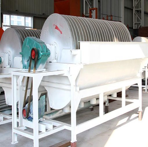 永磁筒式磁选机根据其磁场强度、磁系排列、简体结构的不同,广泛用于磁铁矿分选、粗粒预选抛尾、过滤前浓缩、磁性加重剂回收、湿式强磁选给矿预选以及石英砂等非金属矿物除铁提纯等。永磁筒式磁选机由磁系、圆简、分选槽、传动装置以及给料、排料各溢流装置组成。磁系排列和磁极数量对分选结果有决定性影响。根据简径大小,磁极一般为4~7极,极性沿周边方向交替。圆简用来吸附和运送磁性颗粒并防止矿浆浸入磁系。圆简及其端盖用非磁性,高电阻率和耐腐蚀材料制造。分选槽一般用奥氏体不锈钢制造,用橡胶或合成材料作内衬,以防止磨损。一般用齿轮电动机或Y系列电动机通过减速机驱动圆筒旋转。