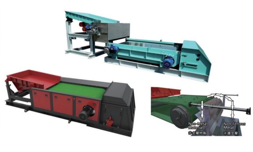 涡电流分选机主要用于从工业和生活废料中回收非铁有色金属,典型的处理对象有: 废铜(铝) 电力电缆、铝制品、汽车废料、非铁金属碎屑、印刷电路板灰渣、含非铁金属玻璃渣、废钢破碎料垃圾、电子废品、多金属(Al、Cu、Pb、Zn)混合物、铸铜(铝)型砂及铝渣等。