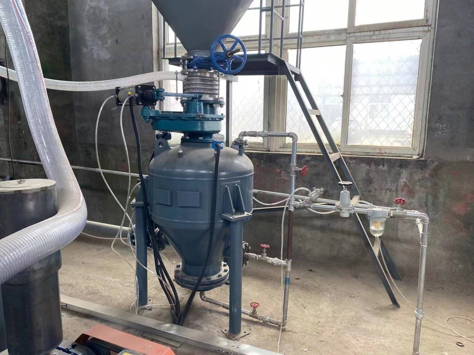 物料浓度适中,物料输送速度约等于悬浮速度,物料在管道中成集团状态自动,适合中压较长距离输送。
